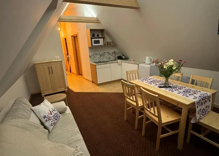 El apartamento está ubicado a 15 minutos a pie del centro de Zakopane. El Telesilla Szymoszkowa está a unos 10 minutos en coche del Apartamenty U Symuna, mientras que la estación de autobuses Ciaglowka está muy cerca de la propiedad. La propiedad se encuentra a una distancia de 3 km de la Gubałówka.